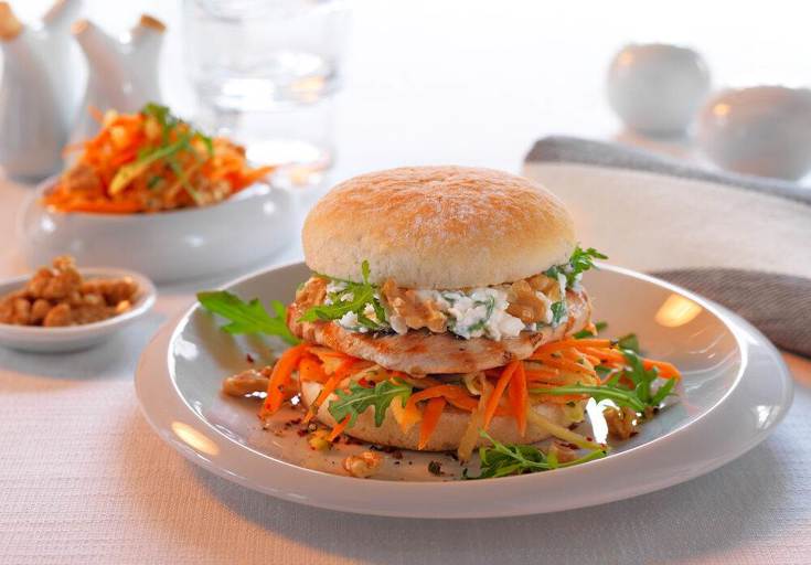 Mit feinem Mehl bestreut, überzeugt dieses großartige Burger-Brötchen durch seine Softness und gleichzeitig sein volles Backaroma. Das Burgerbrötchen hat einen Durchmesser von ca. 125 mm und ist vorgeschnitten.