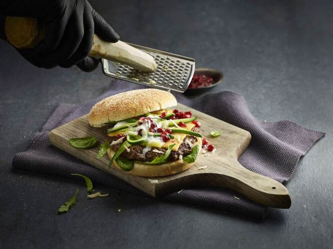 Der Bun enthält einen sehr hohen Anteil an dem beliebten Ur-Getreide Dinkel. Dadurch erhält das Brötchen den für Dinkel charakteristischen milden nussigen Geschmack und ist ideal für klassische bis gesundheitsbewusstere Burger-Rezepte. Der Bun ist vorgeschnitten und hat einen Durchmesser von ca. 125 mm.