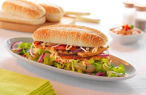 Länger ist lecker! Dieses vorgeschnittene Burgerbrötchen hat eine Länge von 170 mm und ist mit Sesamkörnern bestreut.