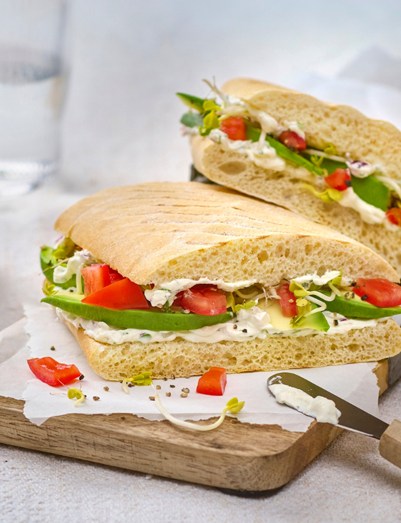 Egal, ob zum Frühstück, Mittagessen oder als Snack zwischendurch – unsere Panini Sandwiches sind die ideale Wahl für deinen Betrieb. Sie sind fertig gebacken und vorgeschnitten, was Zeit und Arbeit spart. Einfach zubereiten, individuell portionieren und heiß oder kalt servieren. Auch als To-go-Variante sind unsere Panini Sandwiches bestens geeignet.