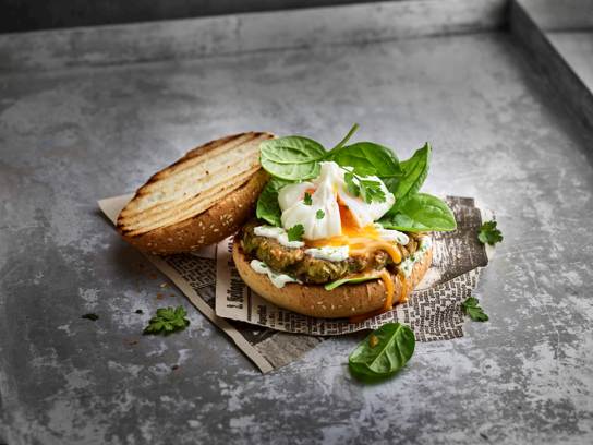 Der amerikanische Frühstücksklassiker verfeinert und aufgepeppt mit Avocado und Apfelstückchen.